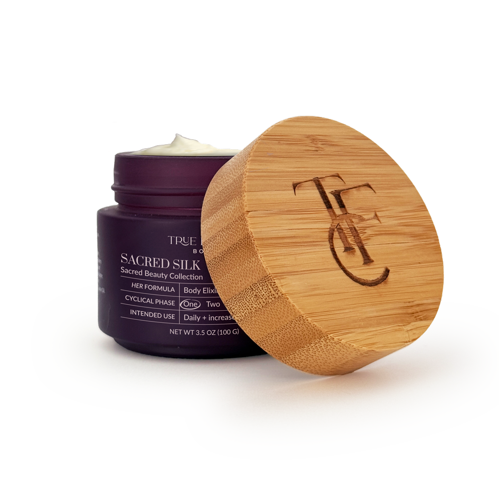 Sacred Silk is more than a body butter—it’s an elixir designed to support her skin’s changes. Infused with powerful adaptogens, exotic butters, and whole-plant extracts, it calms skin stress, soothes inflammation, and deeply nourishes even the most sensitive skin.